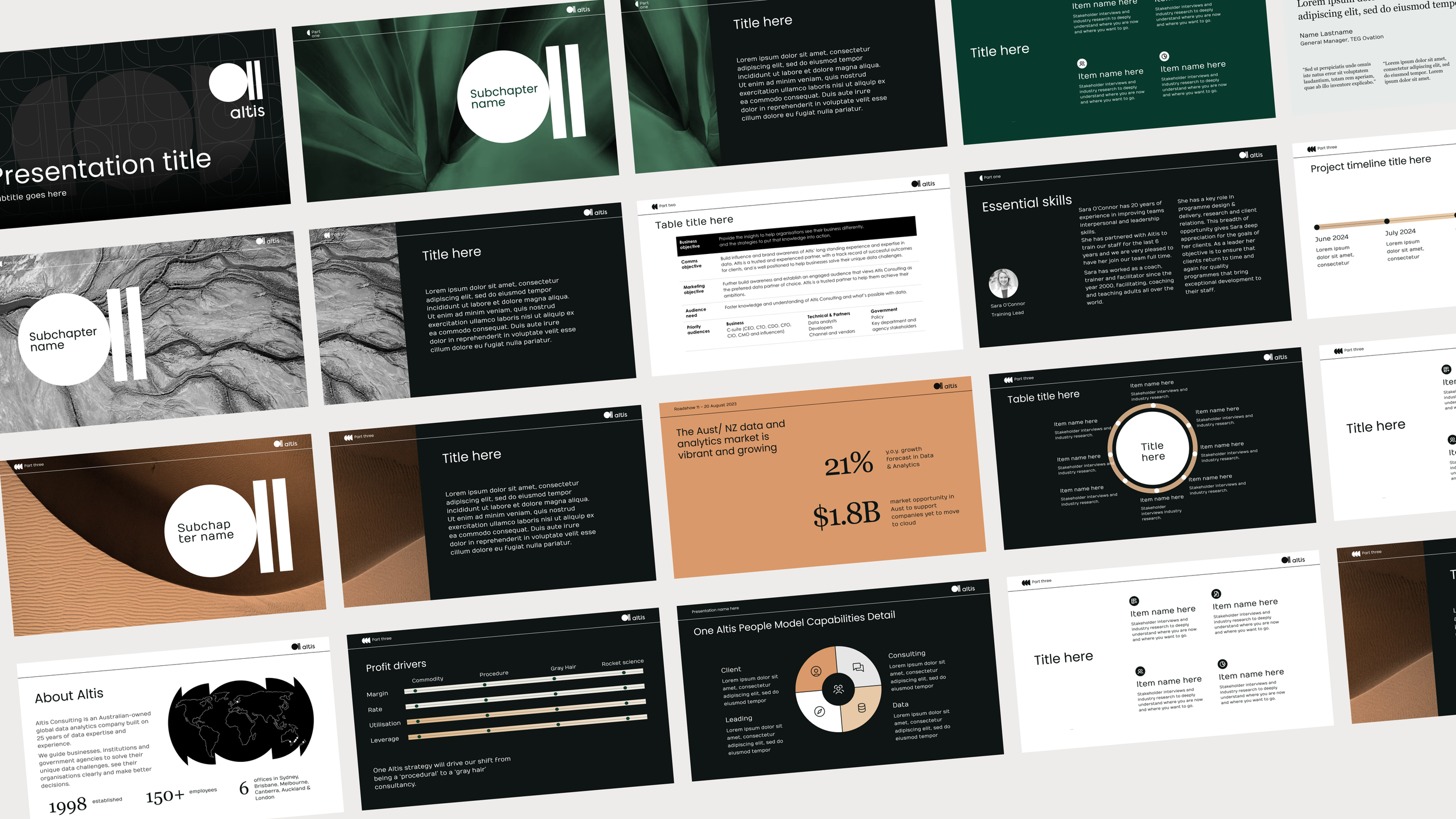 I was tasked with developing a comprehensive brand identity for Altis, a data consultancy business, based on their new logo. This involved creating brand guidelines, defining a cohesive colour palette, designing marketing collateral, developing social media assets, and crafting PowerPoint presentation templates to ensure consistency across all brand touchpoints.